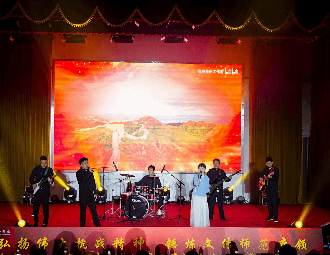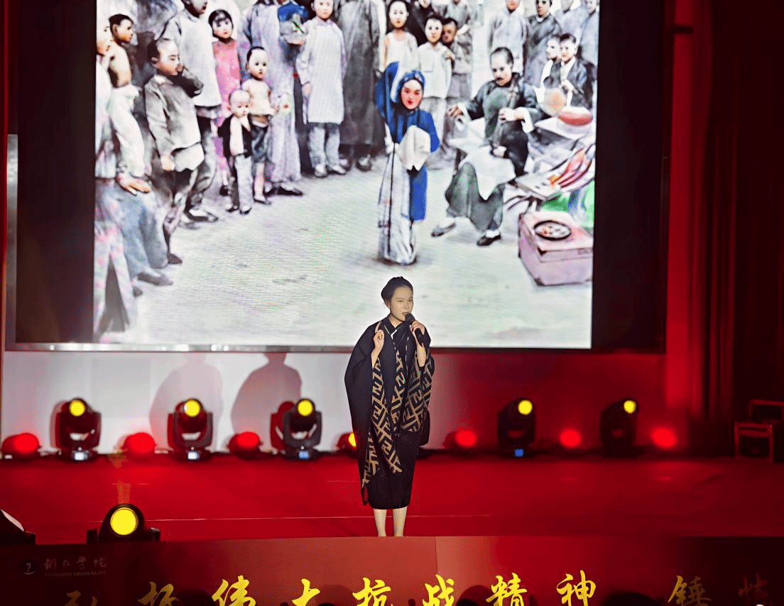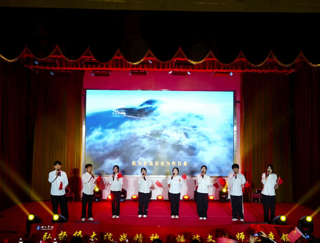 颁奖环节,出席领导嘉宾为获奖同学颁发荣誉证书并合影留念。典礼现场,师生联袂呈现了一场精彩纷呈的文艺表演:鹿鸣乐队的《红旗飘飘》《我的中国心》《龙的传人》奏响爱国旋律,瞬间点燃气氛;朗诵《成为那道明亮的光》《城南旧事》铿锵有力,道出新青年的使命担当;书法与古筝表演古韵悠然,展现传统文化魅力;歌曲《我爱你中国》深情澎湃,抒发赤子之心。这些节目不仅是才艺展示,更是文传学子将红色精神、教育理想与专业能力融合的生动表达。