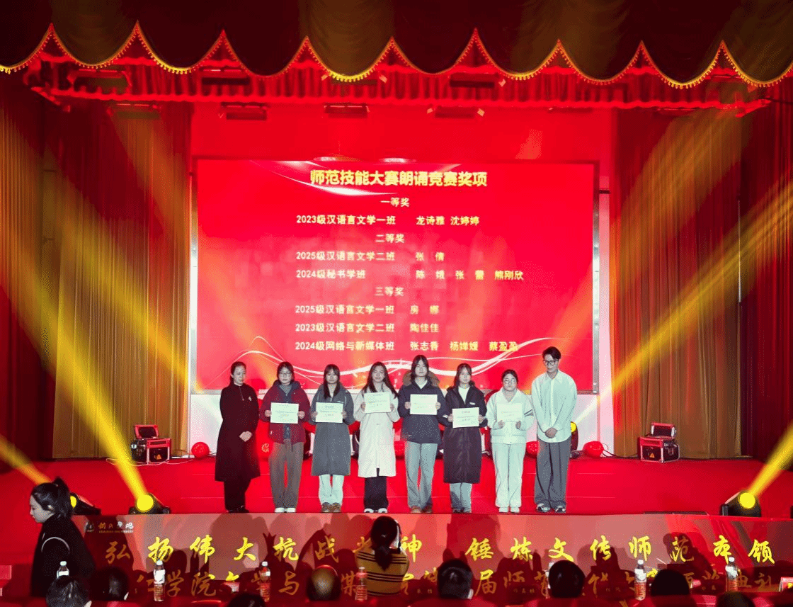 作为文学与传媒学院党建品牌建设重要载体之一,此次活动将伟大抗战精神传承与师范技能培养深度融合,为学院师范专业高质量发展注入动力。未来,学院党委将以品牌赛事为抓手,持续优化育人机制,积极打造优质育人平台,激励全体学生追求卓越,不负青春,共同为建设教育强国而努力奋斗。