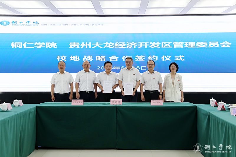 6月18日,我校与贵州大龙经济开发区管理委员会举行校地战略合作签约仪式。我校党委副书记、校长石维,开发区党工委副书记、管委会主任宋雨出席仪式并讲话。我校党委委员、副校长杨建,开发区党工委委员、管委会副主任廖明江代表双方签约。我校副校长龚静、相关职能部门和二级学院负责人,开发区党工委委员、党群工作部部长杨超等有关同志参加仪式。