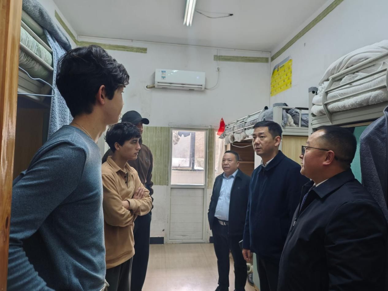 崔松一行深入学生宿舍与在校留学生亲切交流,详细了解了大家的假期生活和学业安排,仔细了解他们在饮食、住宿方面的实际需求。反复叮嘱校园相关负责人要从严从实做好校园保障工作,及时排查各类安全隐患,为留学生营造安全、舒心的学习生活环境。