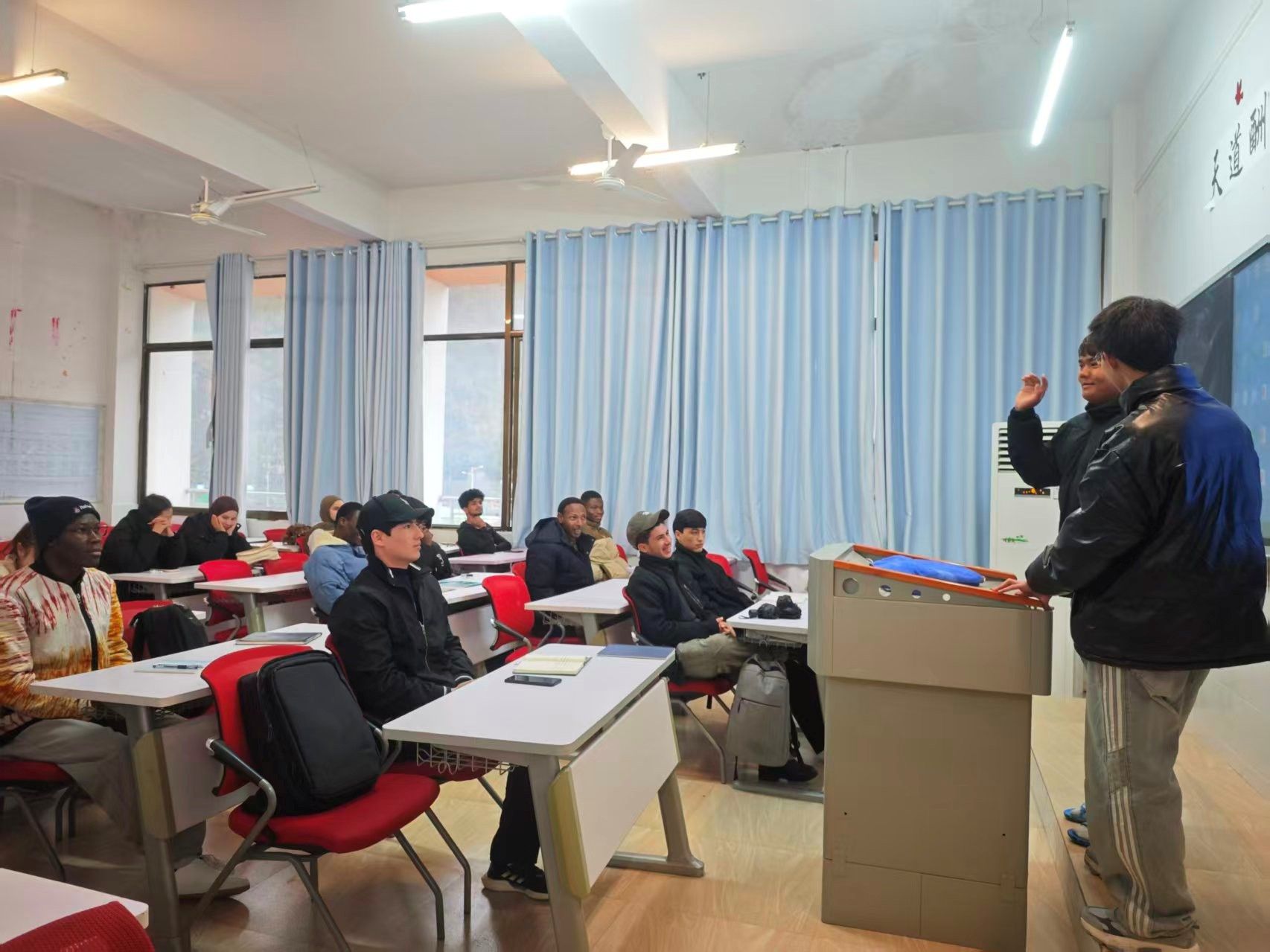 会议强调,全体教师要进一步强化责任意识,深耕课堂教学主阵地,全面落实好“教书育人”根本任务。会议要求,一是要扎实做好备课、授课、作业批改等各环节工作,不断优化教学方法,提升课堂吸引力与实效性;二是积极宣传我校国际学历生的招生政策,鼓励及引导优秀留学生在我 校继续深造;三是要强化教学质量意识,严格落实教学规范,持续提升自身教学能力与专业素养;四是注重学生个体差异,因材施教,结合HSK备考实际开展分层教学与精准辅导,帮助每一位勤奋爱学的学生顺利通过HSK四级水平考试。
