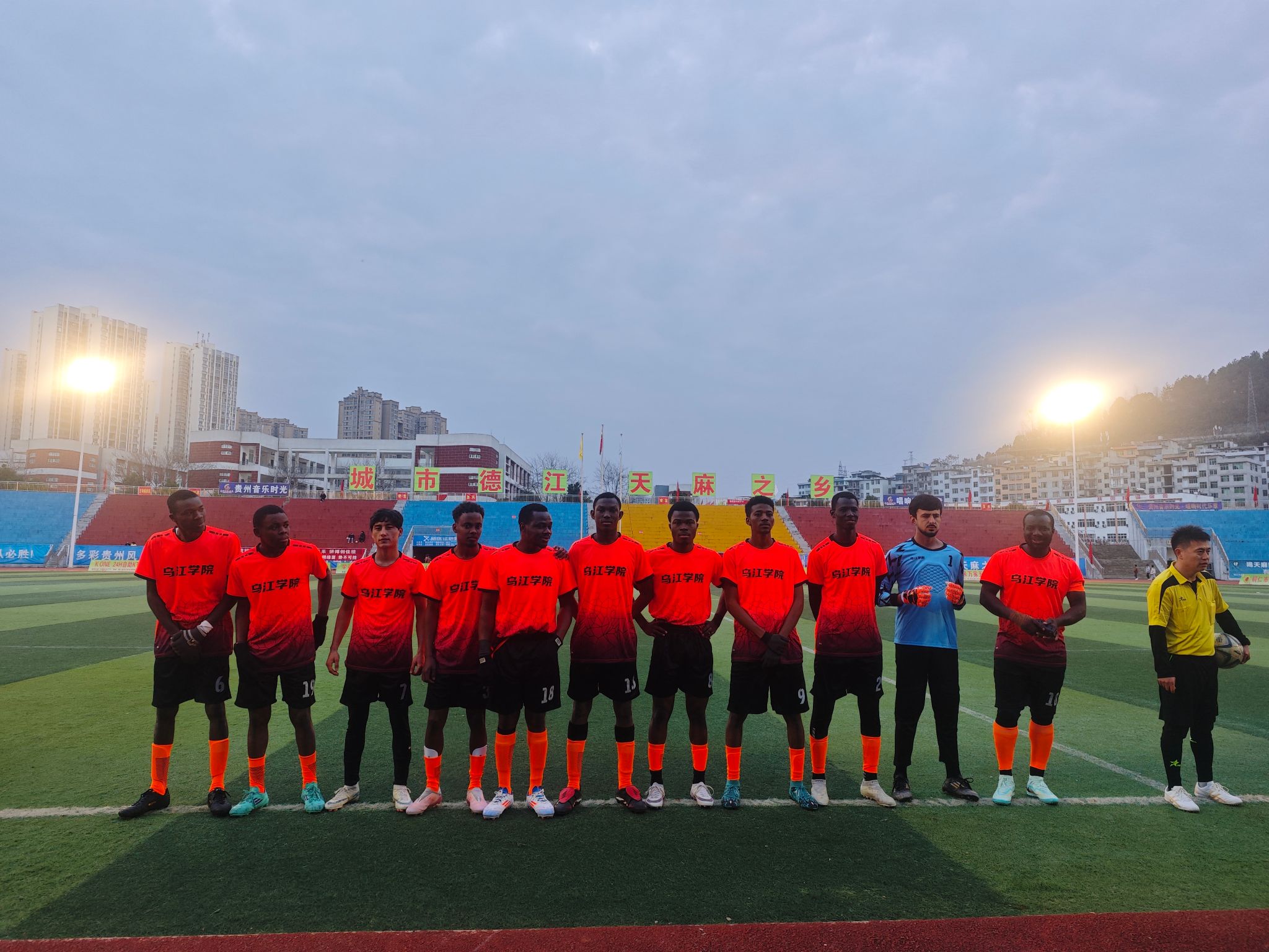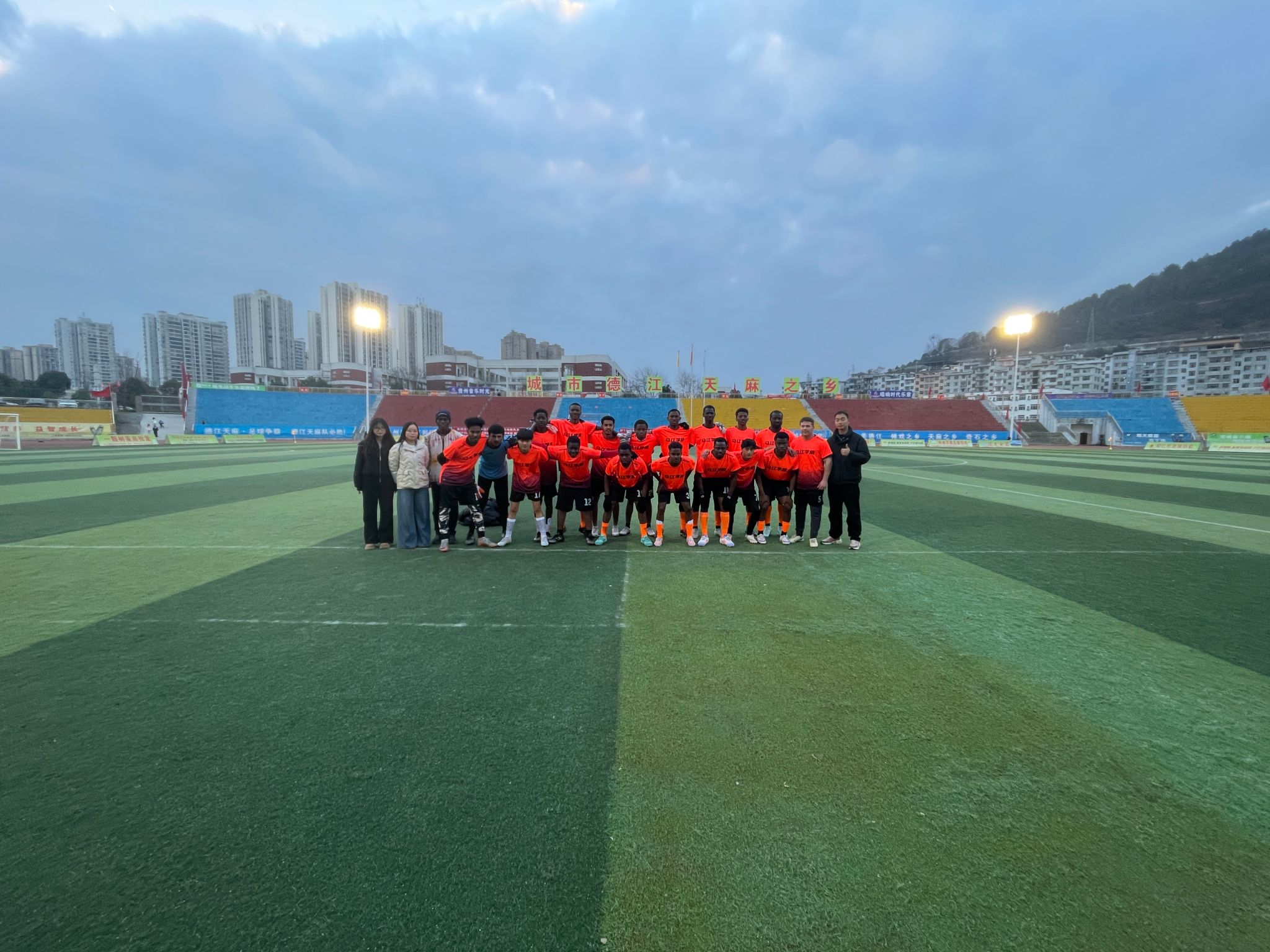 为丰富留学生课余生活,搭建中外文化交流桥梁,2月2日,铜仁学院乌江学院组织20名留学生代表参与德江县第十一届“迎春杯”DY足球赛。来自尼日利亚、苏丹、索马里、老挝、加蓬等10个国家的学子们,以足球为媒,在绿茵场上与德江足球爱好者同场竞技,展现青春活力与国际友谊。