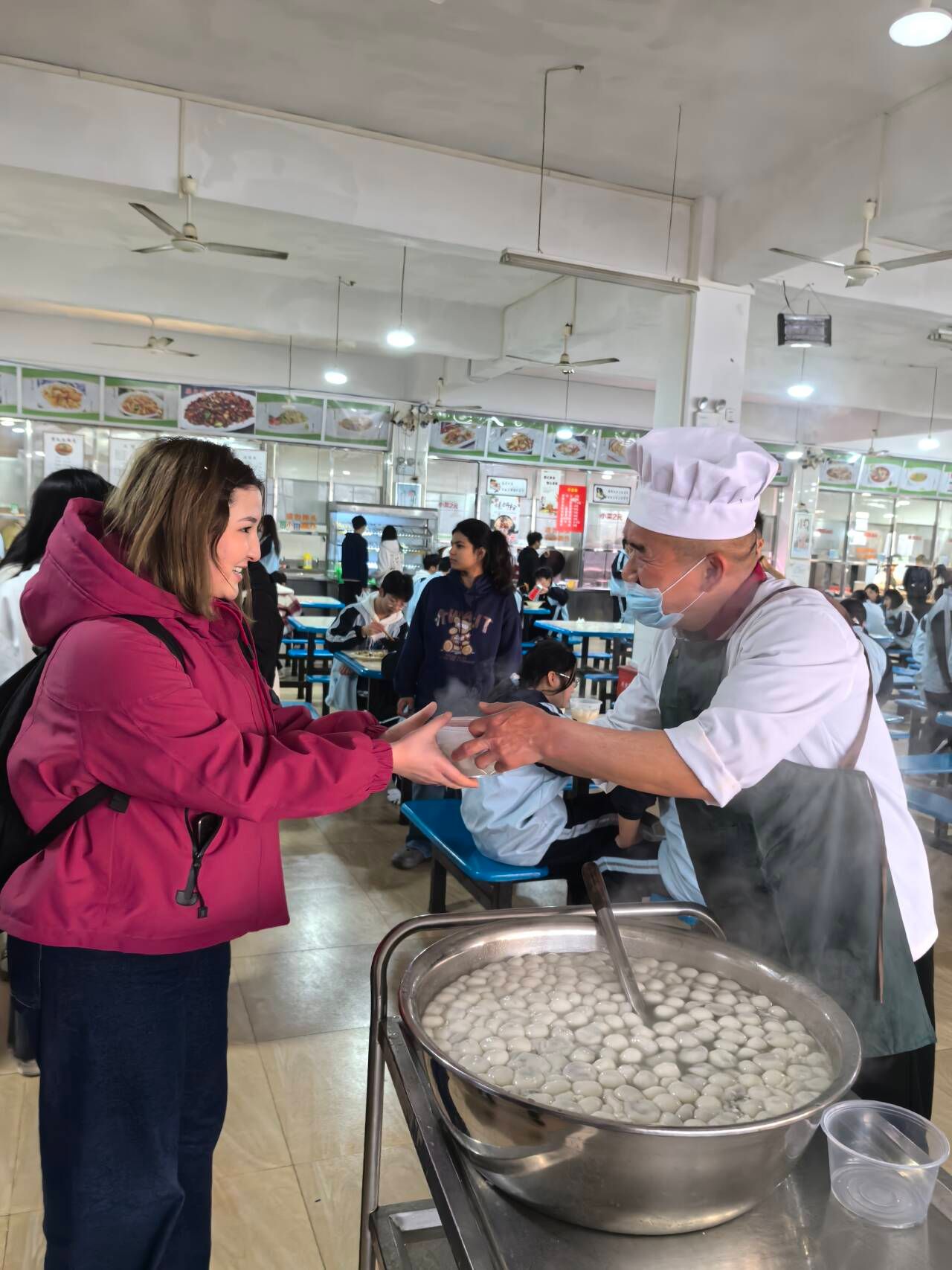 值得特别提及的是,负责校园餐饮服务的团队在校园餐饮领域深耕十余年,始终将师生的冷暖放在心间。每逢端午、中秋、元宵等传统佳节,都会通过赠送粽子、月饼,烹煮汤圆等方式,将惠民之举转化为校园里的日常温暖,以坚守与付出让中外学生感受到家的温馨。