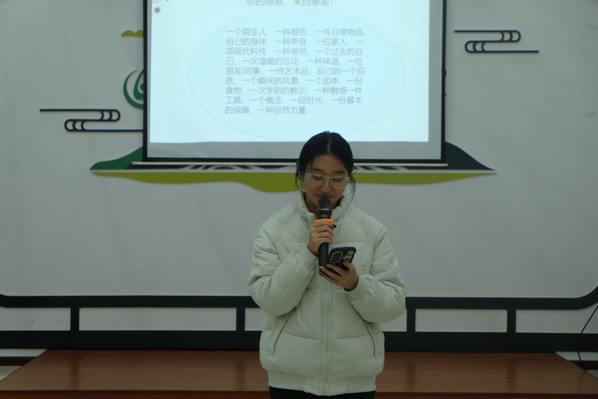 活动伊始,主持人真诚发问:“同学们是否发现,当我们用心捕捉生活中的善意与美好,常怀感恩之心,日子便会悄悄染上暖意?” 瞬间引起了大家的共鸣,自然引出本次“感恩练习------重塑你的幸福大脑”的活动主题。紧接着,一段记录生活中平凡感恩事迹的视频缓缓播放,视频里的感恩事迹让现场的同学们忍不住轻声交流起自己的经历与感触。