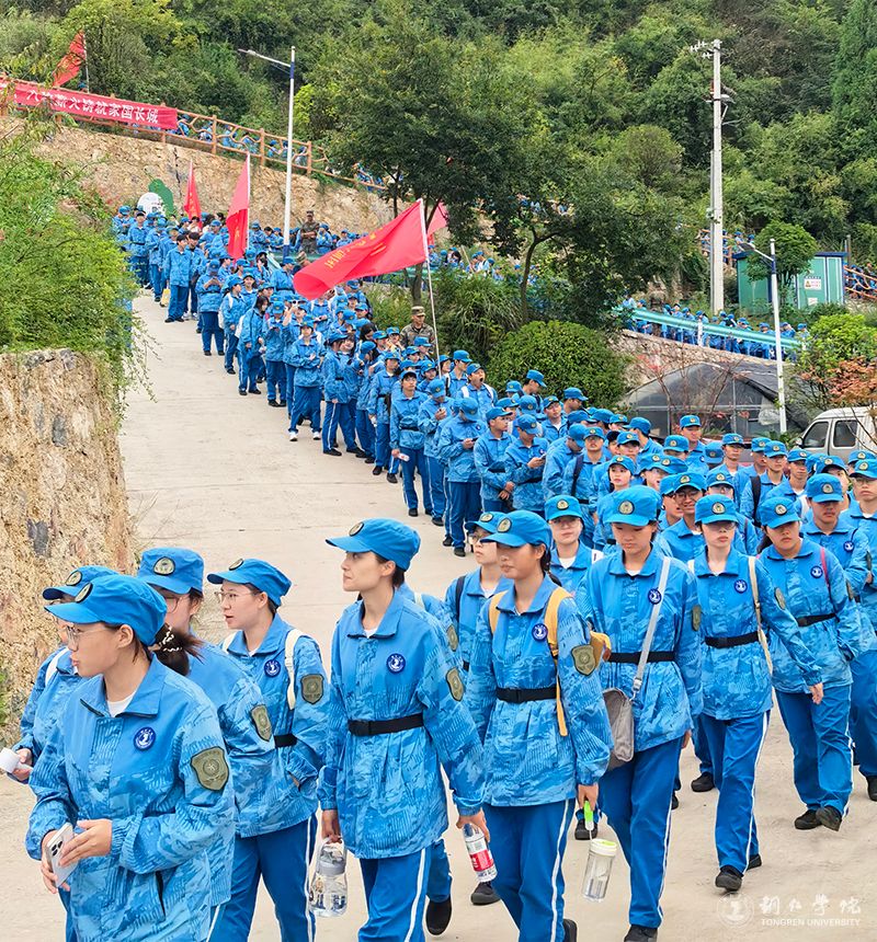 拉练过程中,各军训连队的队旗高扬、队列整齐,队员们的步伐坚定、口号响亮,充分展现了良好的精神风貌。各医疗点和补给点的工作人员、志愿者坚守岗位,全力做好服务保障工作。经历1个多小时的跋涉,两支队伍抵达终点并举行会师大会。