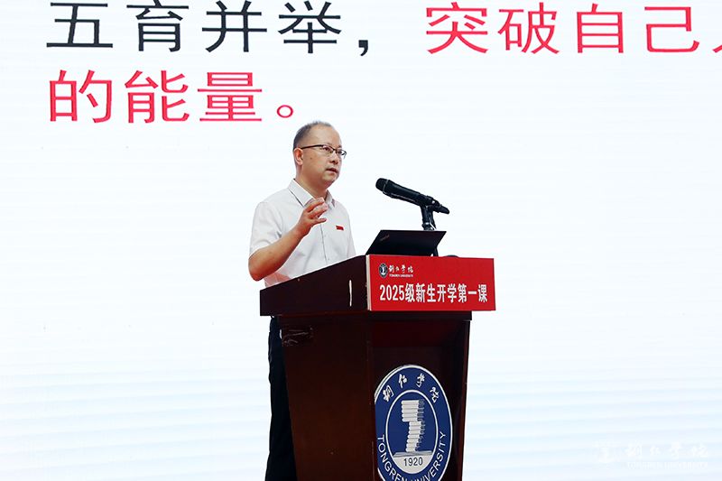 9月17日上午,校长石维教授在体育馆以“创新源于对哲学与科学的追问”为题,为2025级新生讲授“开学第一课”。党委学工部部长张钱主持。相关职能部门主要负责人,各学院分管学生工作领导、学生科(团委)负责人、2025级新生辅导员、班主任,全体2025级新生到场听课。