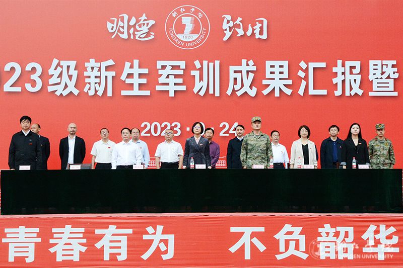 大会在庄严肃穆的国歌声中拉开帷幕。在军训团团长的指挥下,各连队进行了分列式汇报。受训新生英姿飒爽、步履铿锵,目光灼灼、生披戎装,精神饱满、昂首挺胸,迈着矫健的步伐阔步走过主席台,接受领导的检阅。他们坚定自信的面庞,彰显着大学青春的风采,矫健的身姿,无愧于扎实的训练,齐步虎虎生风、正步掷地有声、队列整齐划一,把铜院学子团结拼搏、敢当敢为的精神状态展现得淋漓尽致。