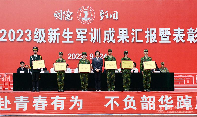 大会上,梁正海宣读了2023级新生军训表彰名单。其中,四连、六连、十一连、十三连、十八连、仪仗队六个连队荣获“优秀连队”称号,李正超、万里、王国霄、陈行、顾小贵、贺登航6名教官荣获“优秀教官”称号,黄娟、陈丽蓉、任玲娜等82名学员荣获“优秀学员”称号。出席大会领导为受表彰的优秀个人和集体颁发了证书。
