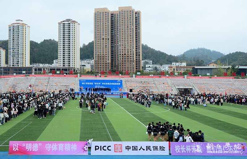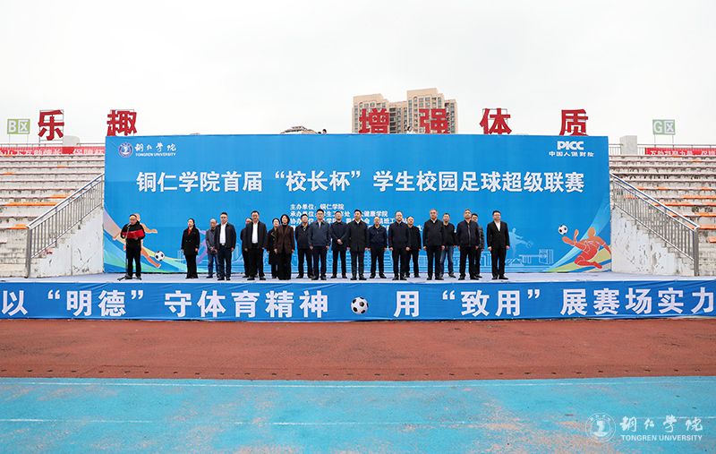 11月5日,我校首届“校长杯”学生校园足球超级联赛在田径场正式拉开帷幕。党委书记朱克乾、校长石维等学校党政领导班子成员和全体党委委员,中国人民财产保险股份有限公司铜仁分公司总经理陈开龙出席开幕式。各二级学院领导班子、相关职能部门负责人,以及各参赛队伍、裁判员、工作人员、师生代表参加开幕式。
