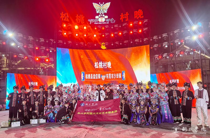近日,我校“明德印记·青春向党”助力乡村振兴文化艺术服务团一行67人,在校团委副书记田淼、教育学院杨松慧老师的带领下,再次走进“松桃村晚”舞台,与来自广东东莞沙田的文化团队联袂献艺,开展了一场别开生面的文化交流活动,用青春的创意与才华,为乡村振兴注入文化动能。
