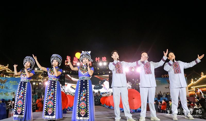 本次活动是校地合作、文化互融的生动实践。我校“明德印记·青春向党”助力乡村振兴文化艺术服务团由校团委、艺术学院、教育学院、大健康学院联合组建。服务团不仅承担了演出任务,更深度参与创作与编导。田淼担任晚会节目导演,并倾情创作了展现苗乡新貌的原创歌曲《苗乡盘信好风光》及情景舞蹈《太阳出来》,将高校的智力资源与地方的文化底蕴紧密结合。