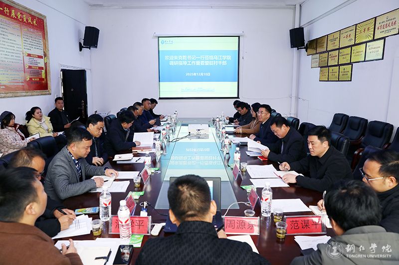 朱克乾一行首先来到乌江学院调研并召开交流座谈会。德江县委常委、宣传部部长、统战部部长赵杰,县农业农村局(乡村振兴局)副局长何嵩,乌江学院副院长李念和该院教职工,我校派出到德江的10名驻村干部参加座谈会。会上,赵杰介绍了德江县乡村振兴工作和天麻产业发展情况;李念汇报了乌江学院办学和开展校地合作情况;驻村干部刘朝军、张玉军、龙光海作为代表,分别汇报了驻村工作情况。