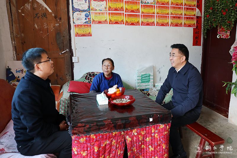随后,朱克乾一行深入我校驻村干部徐茂成、潘学平所在的潮砥镇岩坝村和营盘村走访调研。潮砥镇党委负责人对朱克乾一行的到来表示欢迎,对学校给予潮砥镇的大力支持和驻村干部扎根基层为当地产业发展、基层治理等方面做出的贡献表示感谢。在营盘村召开乡村振兴工作交流座谈会上,朱克乾听取了村里的驻村工作情况和产业发展情况汇报。他表示,学校将始终积极履行社会责任,发挥人才和智力优势,推动实现校地优势互补,有效带动当地群众持续增收,巩固拓展脱贫攻坚成果,扎实助力乡村全面振兴。