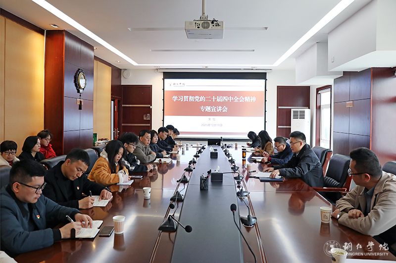 12月11日,校党委副书记朱钰在行政楼8312会议室宣讲党的二十届四中全会精神。党委常委、统战部部长叶丹,党委组织部、党委宣传部、党委统战部、机关党委、团委、工会副科级以上干部,艺术学院、文学与传媒学院、大数据学院师生代表参加宣讲报告会。