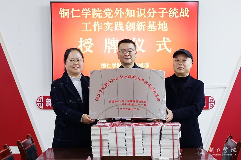 12月12日,在校党委常委、统战部部长叶丹的带领下,我校党外知识分子联谊会会长龙庆华,党委统战部副部长、“知联会”常务副会长、秘书长罗玲玲,我校留学人员联谊会秘书长陆艳,“知联会”全体理事一行,赴铜仁市第二十小学(铜仁学院附属小学)开展调研,并举行“铜仁学院党外知识分子统战工作实践创新基地”合作签约暨挂牌仪式。