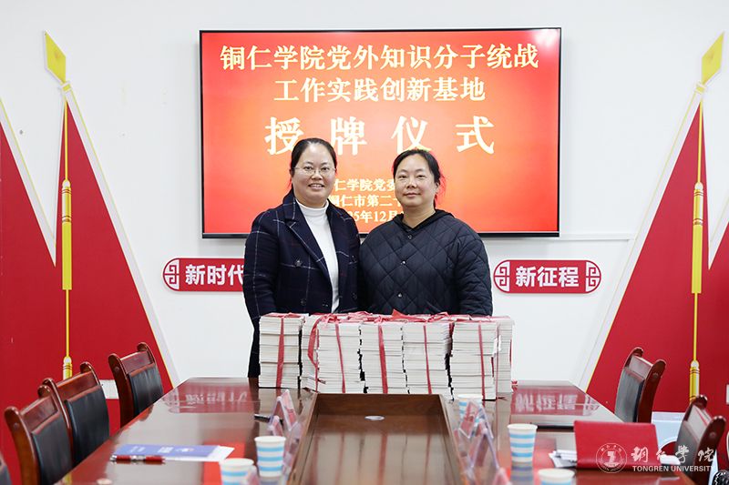 调研期间,在大家的见证下,叶丹为“铜仁学院党外知识分子统战工作实践创新基地”授牌,龙庆华与张丽娟代表双方签订实践创新基地合作协议,罗玲玲向第二十小学捐赠了图书《贵州科学家故事》300册。