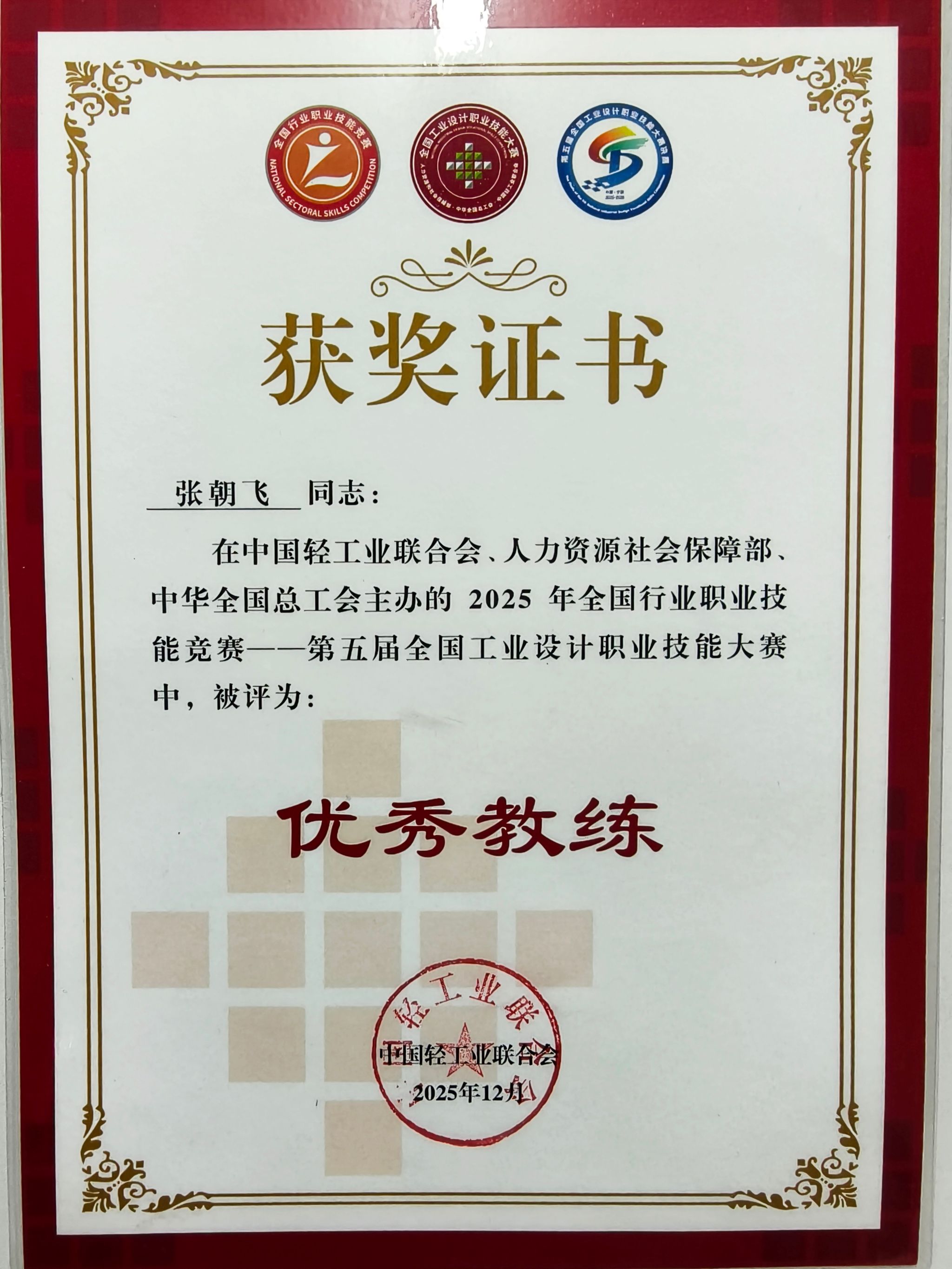 指导老师在备赛过程中,紧密结合赛事导向与产业实际,为王超群提供了精准的指导,从设计理念梳理、工艺技法优化到临场应变技巧等方面给予全方位支持,充分展现了我校教师深厚的专业素养和扎实的教学能力。此次“优秀教练”称号的获得,是对我校教学水平和指导能力的充分肯定。