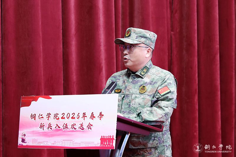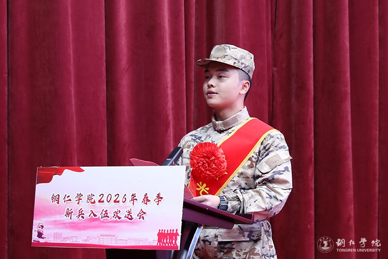 强国必须强军,军强才能国安。3月17日,我校在梵净山人文生态馆举行2026年春季新兵入伍欢送会。校党委副书记、校长石维出席会议并致欢送辞。党委副书记朱钰,副校长杨建、潘学军,纪委书记张仕凯,党委常委、组织部部长周曾艳、宣传部部长周永雄出席会议。党委学工部(人民武装部)部长张钱主持会议。
