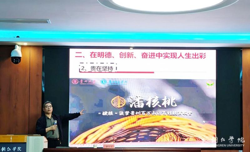 潘学军的授课从贵州脱贫攻坚伟大历程、新时代贵州翻天覆地发展成就、乡村振兴时代使命三大维度展开。他在回顾过去时说,贵州是全国脱贫攻坚主战场,学校主动投身贵州省大扶贫战略行动,扎实打好科技扶贫、教育扶贫、校农结合三套组合拳,以切实行动践行了“牢记嘱托、感恩奋进”的使命担当。