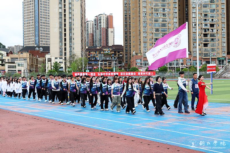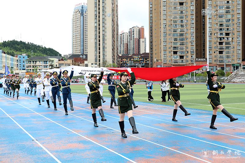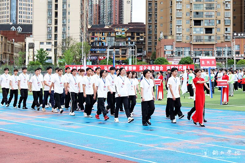 开幕式正式开始前,运动场上已是一片沸腾。伴随着激昂的乐曲和解说员充满激情的介绍,国旗、校旗、会旗方阵率先入场,旗手身姿挺拔、精神抖擞。接着,各二级学院方阵依次登场,师生们精神饱满、步伐矫健,展现积极向上的良好风貌。裁判员阵列穿戴统一、行进利落,尽显客观公正的执裁姿态。大家以昂扬的姿态步入赛场,将青春的热烈洒满运动场的每一个角落。