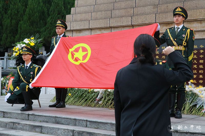活动中,国旗护卫队队员步伐铿锵,庄严敬献花篮。全体团员面向团旗,高举右拳,重温入团誓词。“我志愿加入中国共产主义青年团……”誓言铮铮,回荡陵园,传递出青年一代不忘初心、紧跟党走、矢志奋斗的坚定信念。