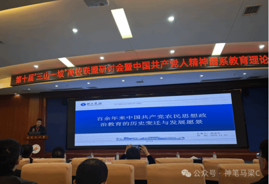 在专家报告环节,铜仁学院梁成艾教授作了题为“百余年来中国共产党农民思想政治教育的历史变迁与发展愿景”的专题报告。梁教授提出“教育目标助力教学初心贯彻、教育内容助力理想人生境界追求”的创新理念,并系统阐释了“一强主体、二强客体、三强介体”的教育实践路径,引发与会专家热烈反响。据悉,“三山一坡”高校联盟研讨会已成为传承红色基因、弘扬革命精神的重要学术平台。本届研讨会的成功举办,不仅深化了中国共产党人精神谱系的理论研究,更为推进中国式现代化建设提供了宝贵的精神支撑和智力支持。