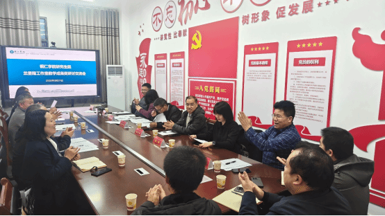 在会议筹备和研讨过程中,研究生党员积极参与其中。李冰艳、江思梦等同学全程参与会议组织、专题汇报和研讨记录,并结合自身研究方向,为一线教师提供文献梳理、数据分析和成果框架优化等支持。对研究生党员而言,这不仅是一次专业能力训练,也是一堂生动的实践育人课;对基层教师而言,这也增强了高校服务的针对性和可及性。通过师生共同参与、校地协同联动,会议进一步形成了“支部引领、党员带头、师生参与、服务基层”的工作格局。