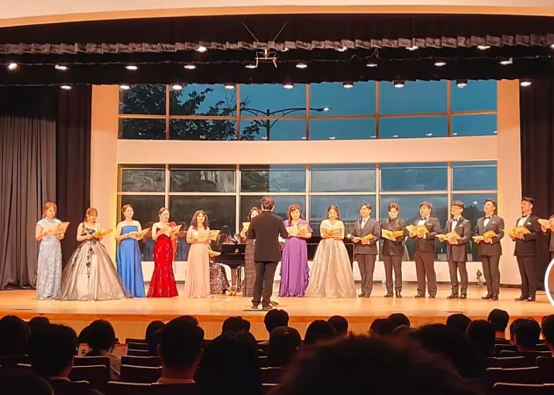 音乐会中,教学者与表演者同台协作,生动演绎了发声技术、艺术处理与舞台表现的教学转化过程。张妮老师全程专注学习,重点观察韩国声乐教学在技术训练、作品诠释与表演实践方面的系统性方法,并深入思考其与国内教学模式的异同与可借鉴之处。