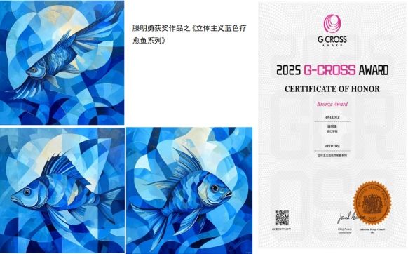 12月15日,艺术学院滕明勇教授的三件设计作品《治愈性空间设计》《疗愈风景插画设计》《立体主义蓝色疗愈鱼系列》获得英国工业设计委员会(Industrial Design Council UK)主办的G-CROSS AWARD 大赛中国区铜奖。